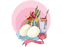 oeufs durs, un veau, un petit pois, une asperge, un fromage avec beurre,