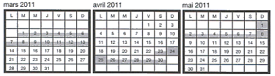 Par exemple pour le mois de mai 2011, il peut obtenir :