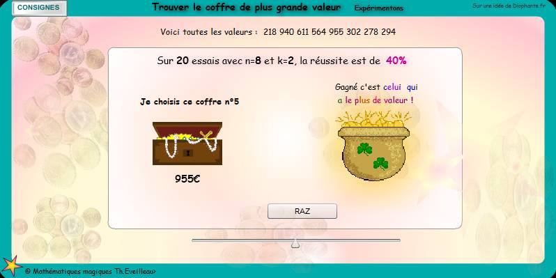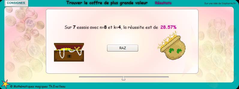 on peut obtenir 40% de chances de réussite avec n=8 coffres et