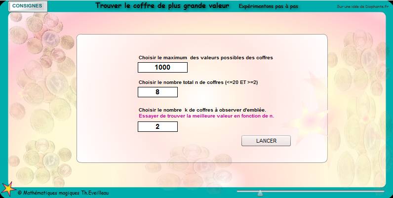 -Choisir le nombre k de coffres qui vont défiler.